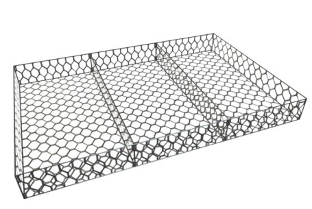 Матрацно-тюфячные габионные конструкции (Матрац РЕНО) выполнены из металлической оцинкованной сетки двойного кручения, имеющей шестиугольные ячейки. Габион разделяется на секции с помощью диафрагм, которые устанавливаются через 1 метр. Это способствует равномерному распределению нагрузок. Габионы поставляются в виде карт, а сборка габионов происходит непосредственно на объекте строительства. Собираются габионы с помощью оцинкованной проволоки для вязки (2,2 мм — 4 мм) или с помощью монтажных скоб.